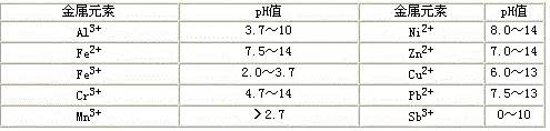 幾種金屬開始生成氫氧化物沉淀時(shí)的pH值