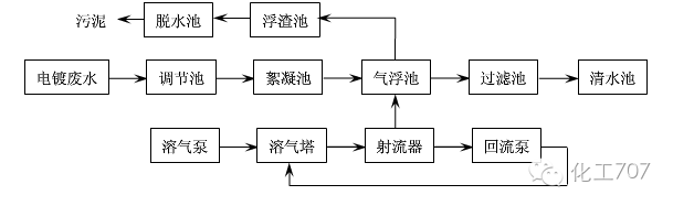 通過添加絮凝劑使得重金屬廢水中的小膠體顆粒穩(wěn)定性變差,聚集形成大顆粒膠體物質(zhì),最終通過重力作用沉淀下來。為增大膠體顆粒的尺寸,采用浮選的辦法,用于將不穩(wěn)定的膠體粒子變?yōu)楣滔嘈跄铩_@一浮選過程一般包括兩個(gè)重要的步驟,一是調(diào)節(jié)pH值,二是加入含鐵或鋁鹽的絮凝劑,以克服離子間靜電排斥導(dǎo)致的穩(wěn)定作用。