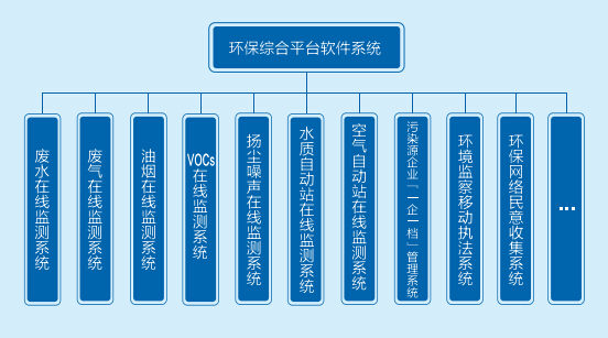 目前已研發(fā)廢水在線監(jiān)測系統(tǒng)、廢氣在線監(jiān)測系統(tǒng)、油煙在線監(jiān)測(監(jiān)控)系統(tǒng)、VOCs在線監(jiān)測系統(tǒng)、揚塵噪聲在線監(jiān)測系統(tǒng)、水質(zhì)自動站在線監(jiān)測系統(tǒng)、空氣自動站在線監(jiān)測系統(tǒng)、污染源企業(yè)“一企一檔”管理系統(tǒng)、環(huán)境監(jiān)察移動執(zhí)法系統(tǒng)、環(huán)保網(wǎng)絡民意收集系統(tǒng)等多個應用子系統(tǒng)。